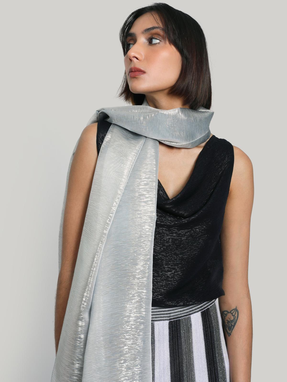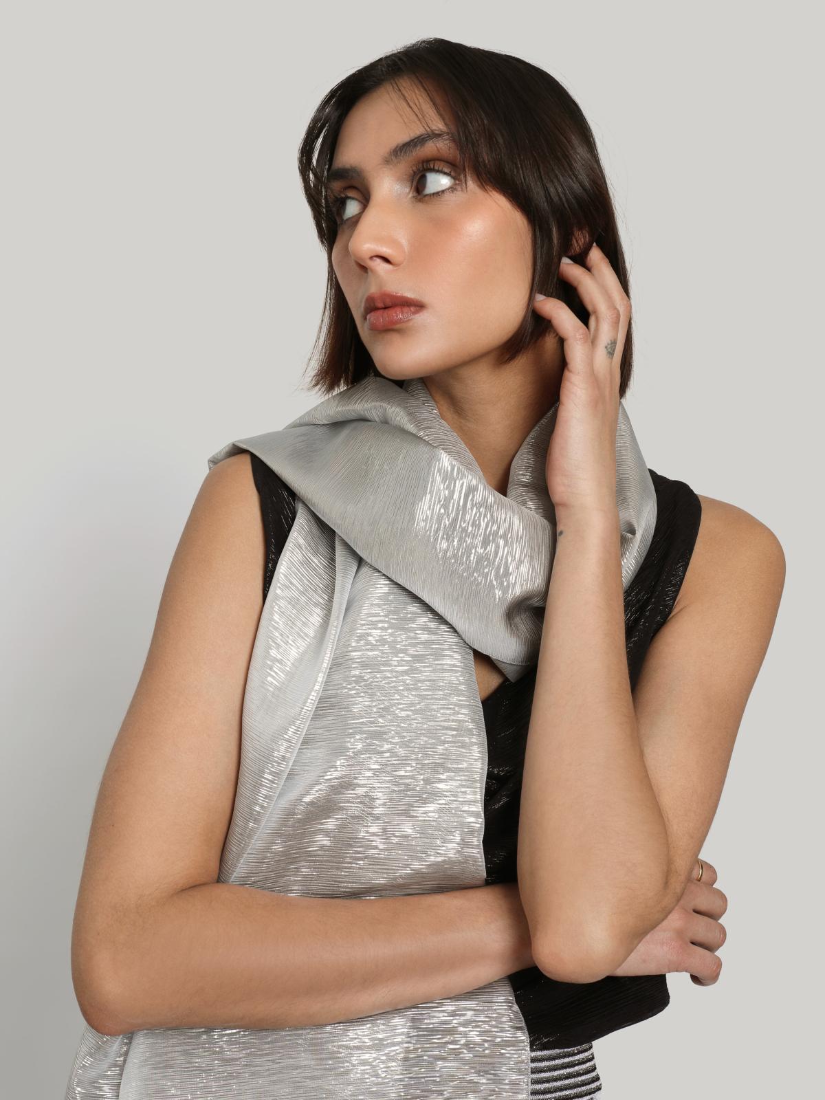 Foulard en soie, lumineux et léger en soie et Lurex®. Il est tissé en région lyonnaise chez un des derniers soyeux lyonnais.