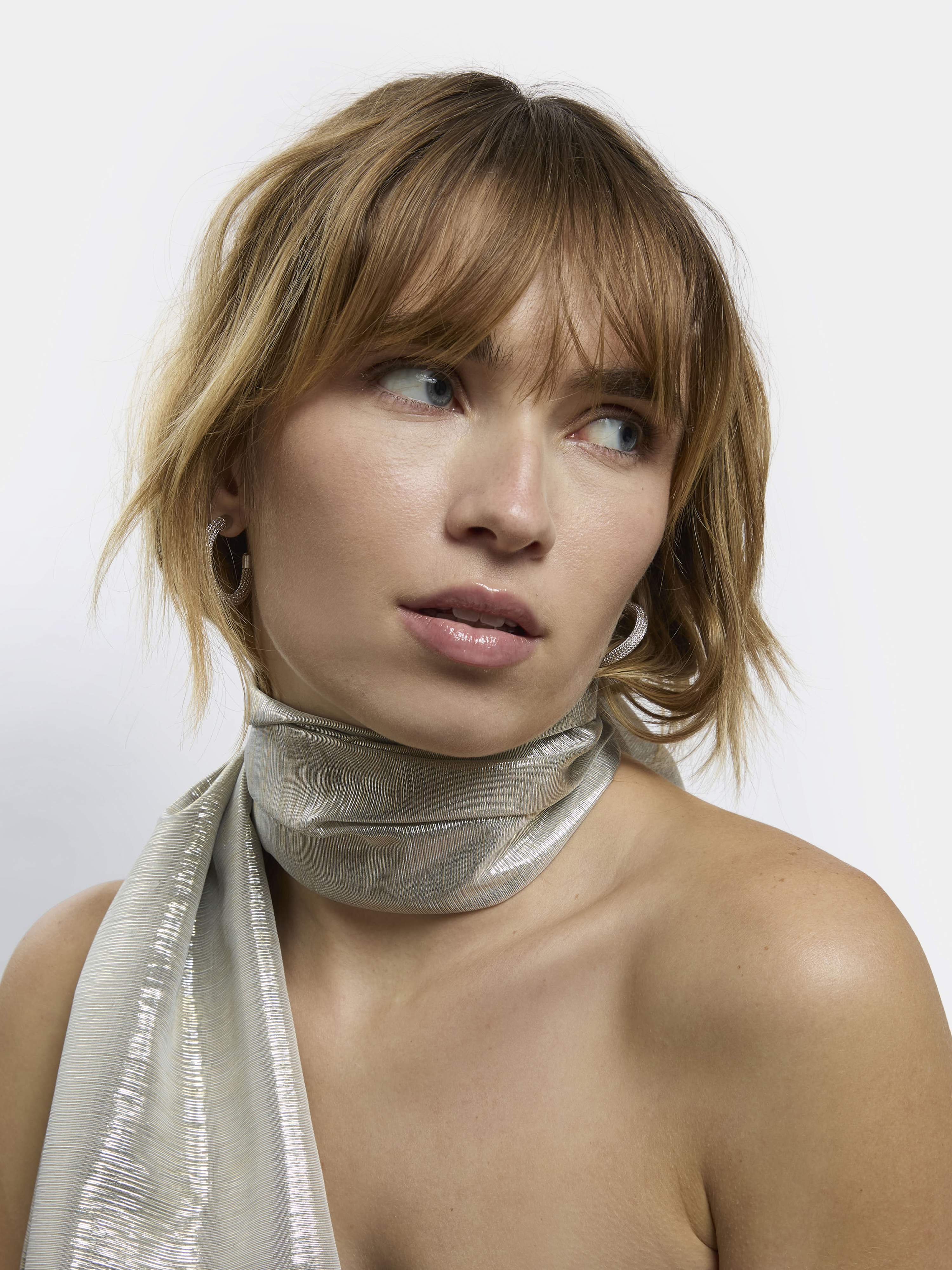 Foulard en soie, lumineux et léger en soie et Lurex®. Il est tissé en région lyonnaise chez un des derniers soyeux lyonnais.