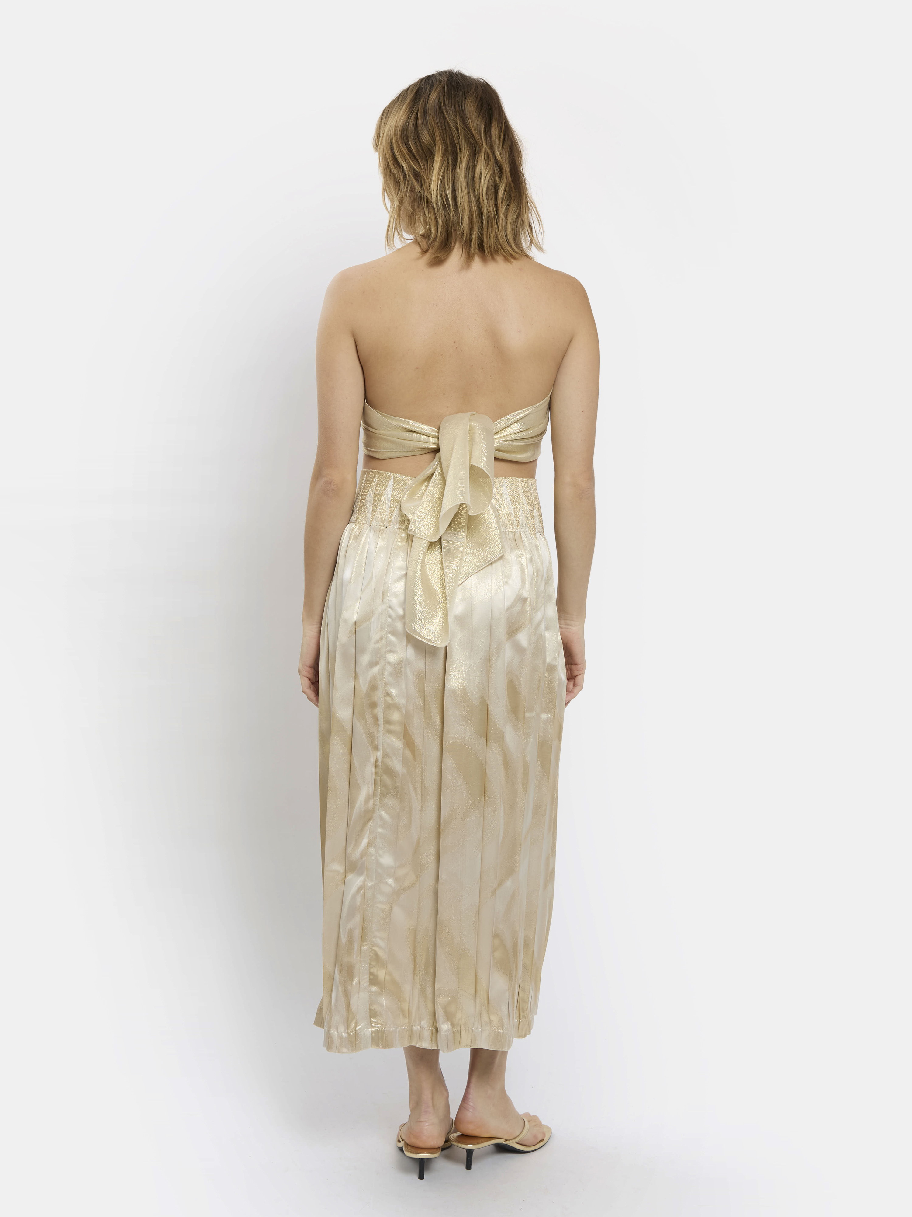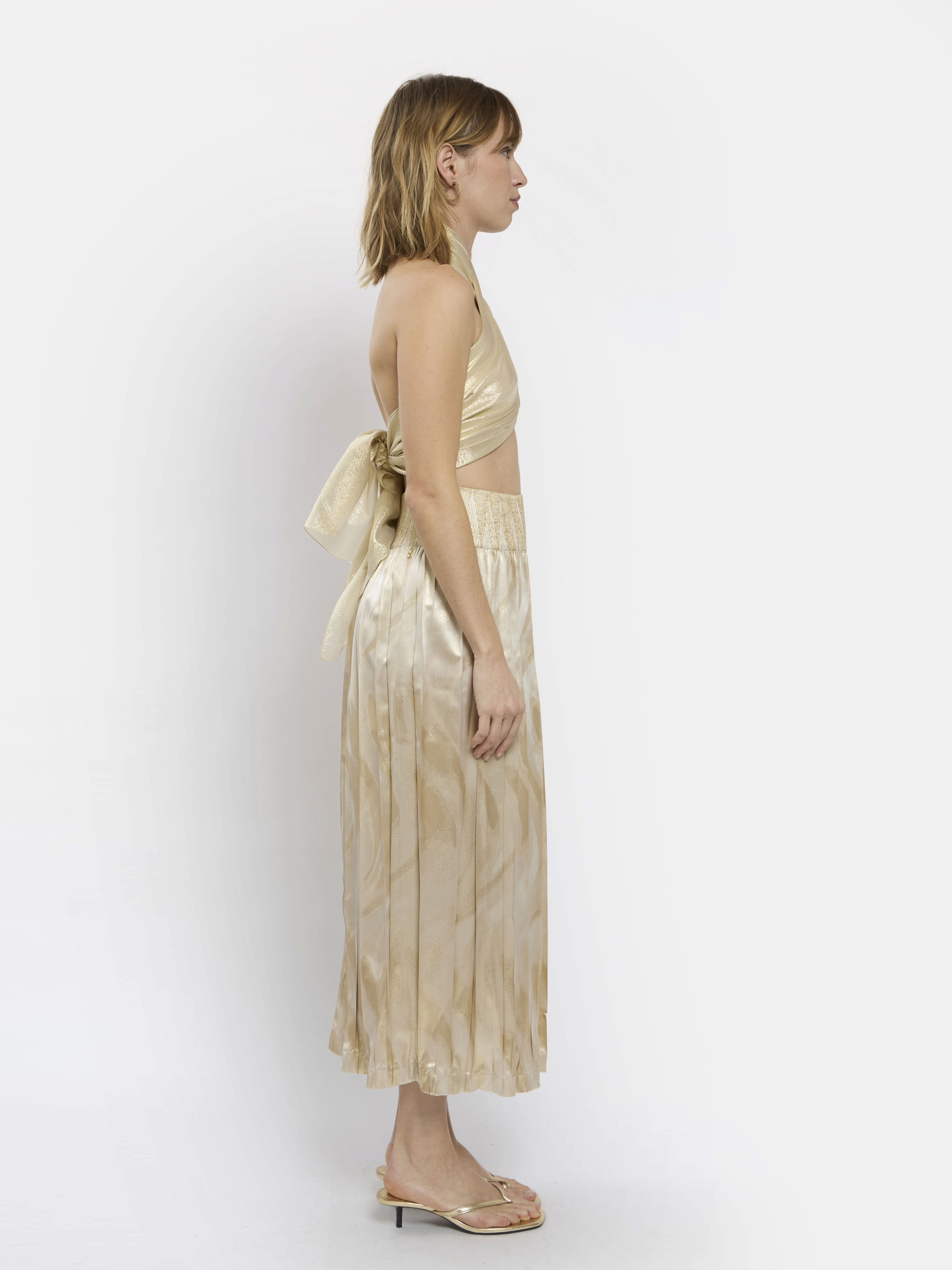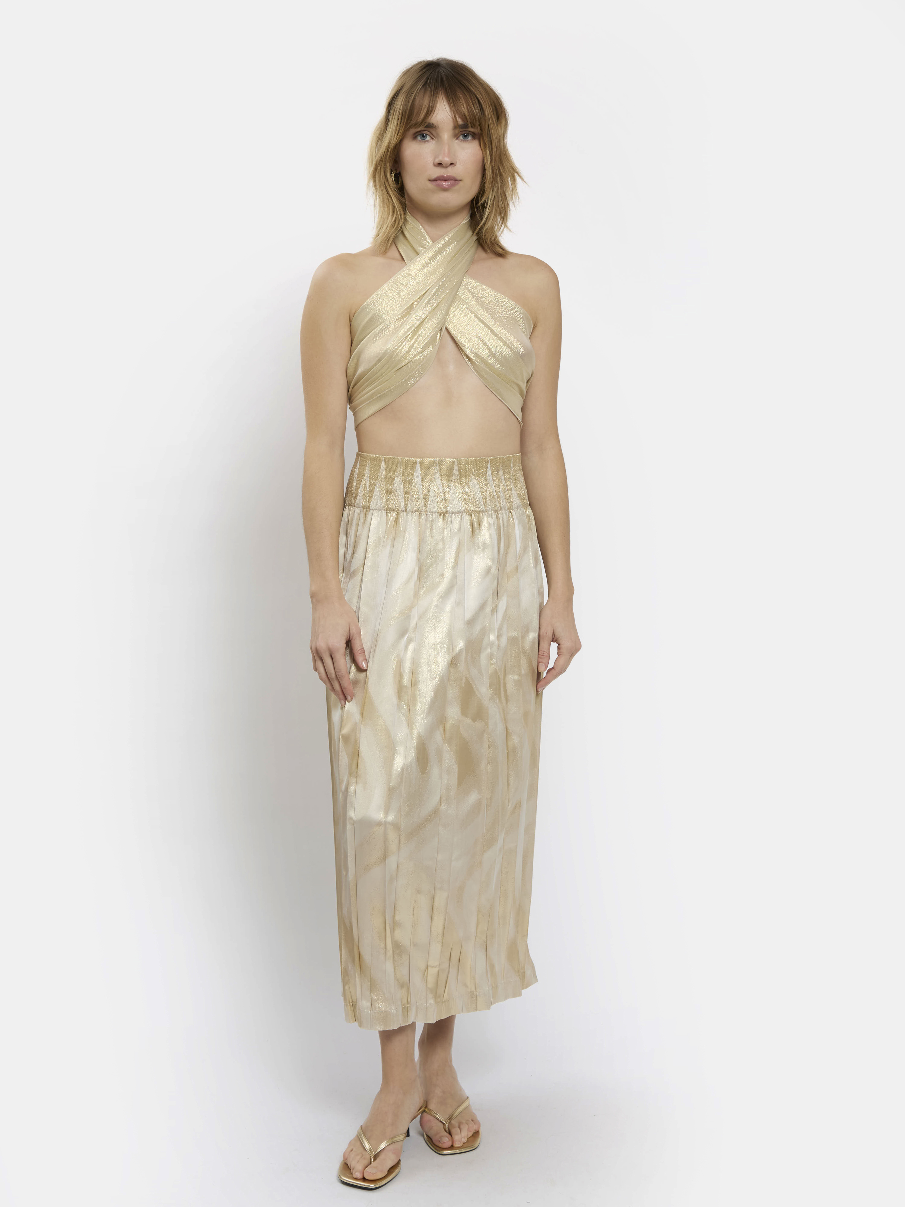 Jupe longue plissée et élastiquée à la taille en polyester et Lurex®.