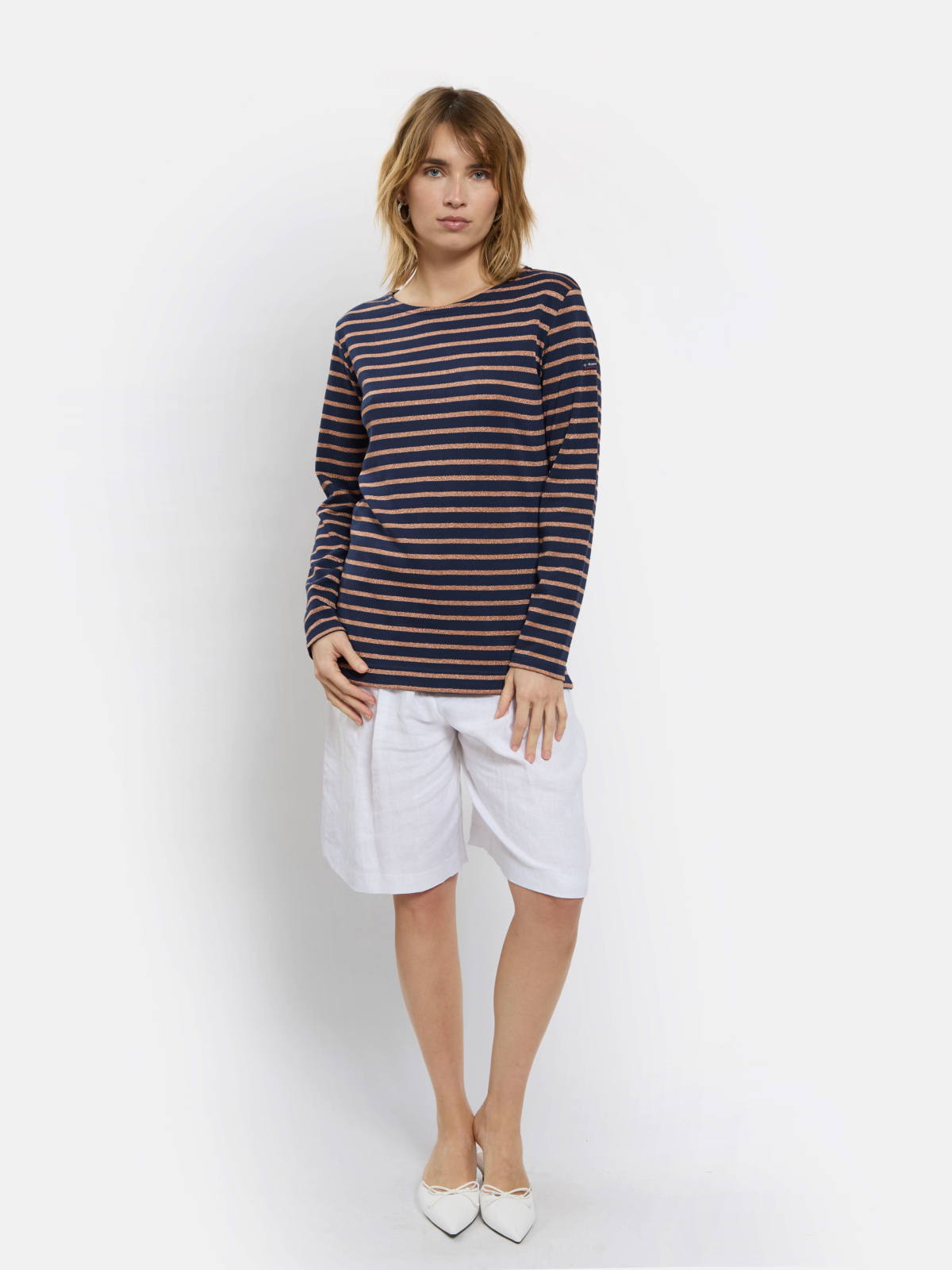 Par leur savoir-faire et leur collaboration, les deux marques françaises, Armor-Lux et Maison Lurex vous proposent une revisite de l’iconique marinière ! Rehaussée d'une touche de brillance grâce aux fils Lurex®, elle est entièrement fabriquée en France.