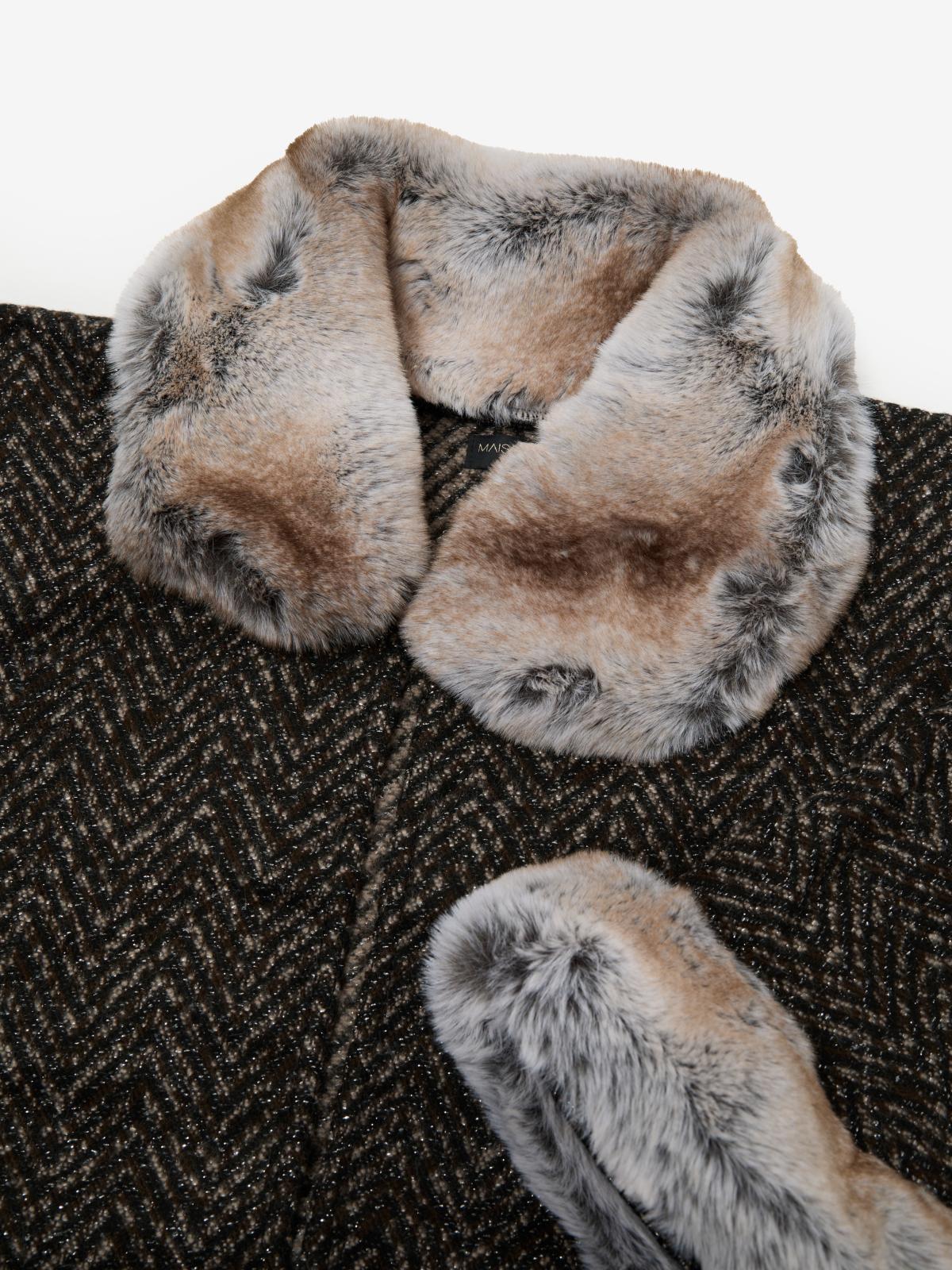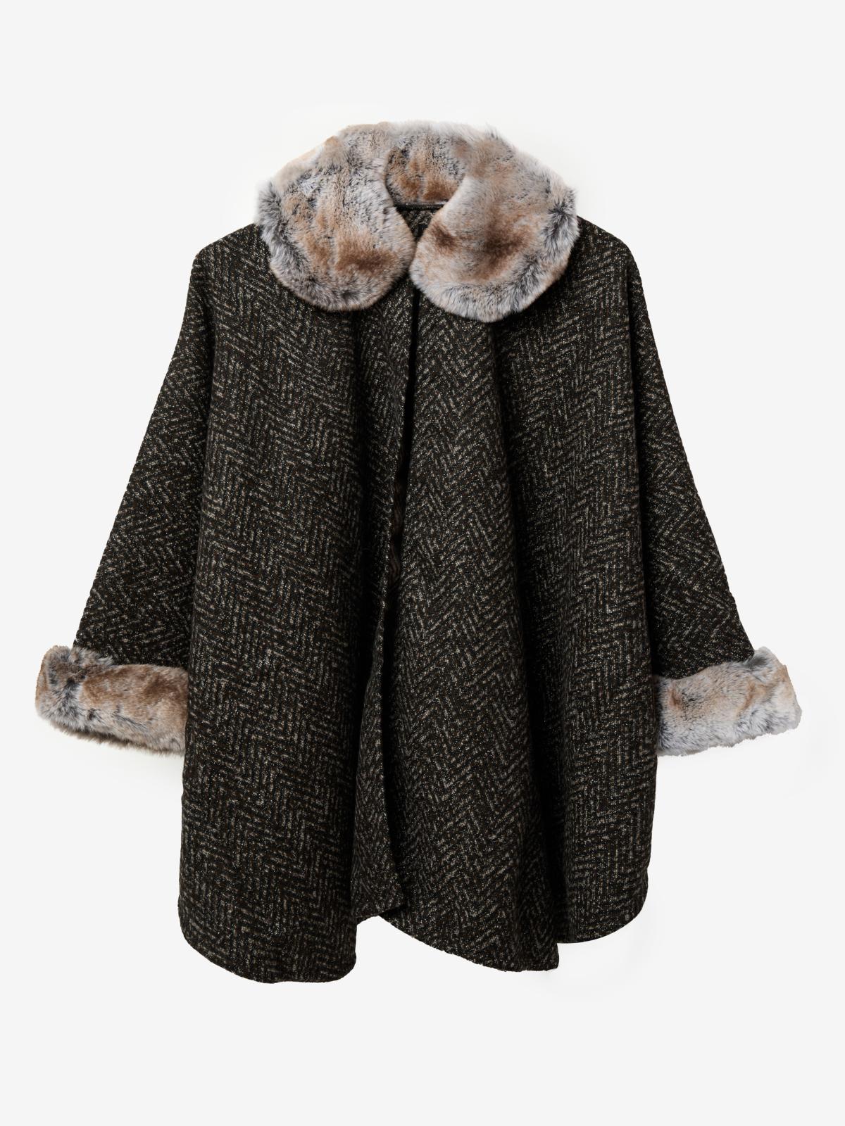 Poncho à motifs chevrons rehaussé par un col et des manches en fausse fourrure.