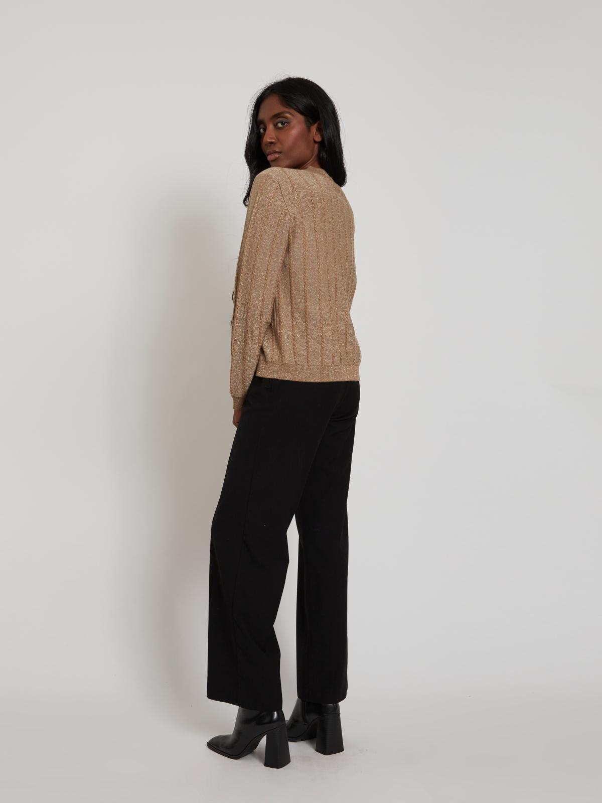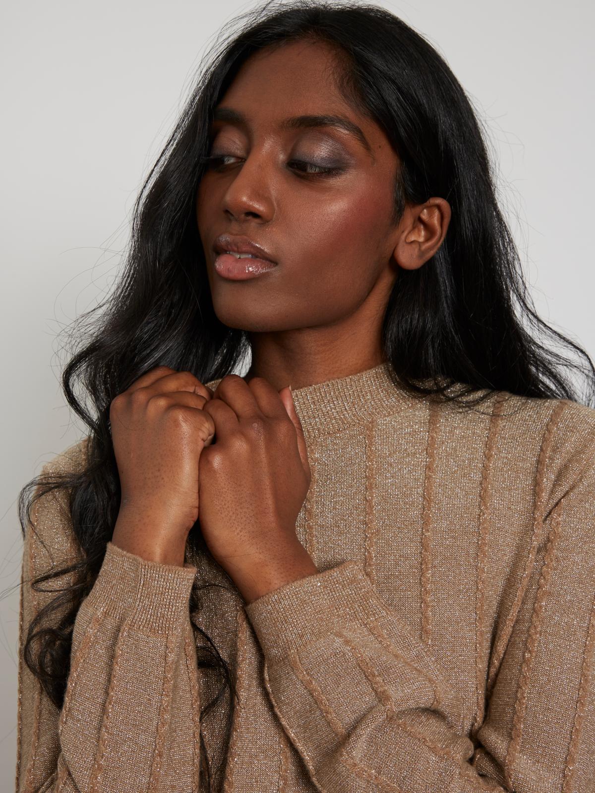 Pull torsadé en cachemire et Lurex®, col ras du cou et manches longues.