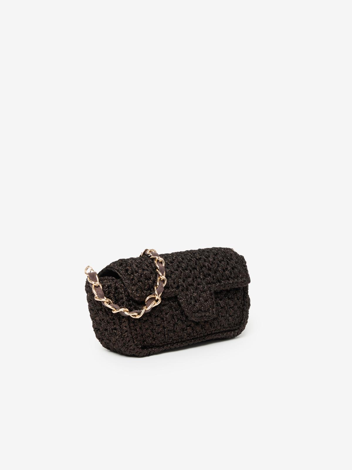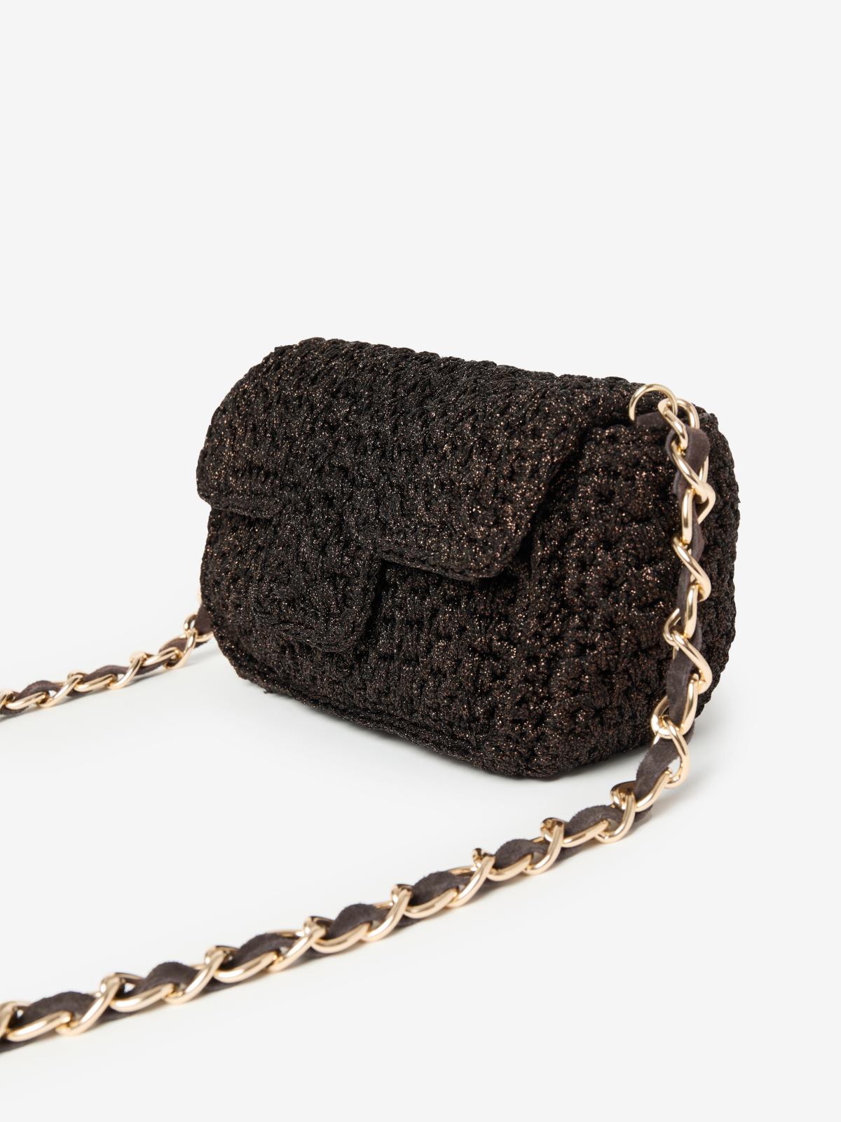 Sac à main à porter en bandoulière, crocheté à la main en Italie avec nos fils Lurex®. Il est la version mini avec chaînette longue de notre sac Fenice.