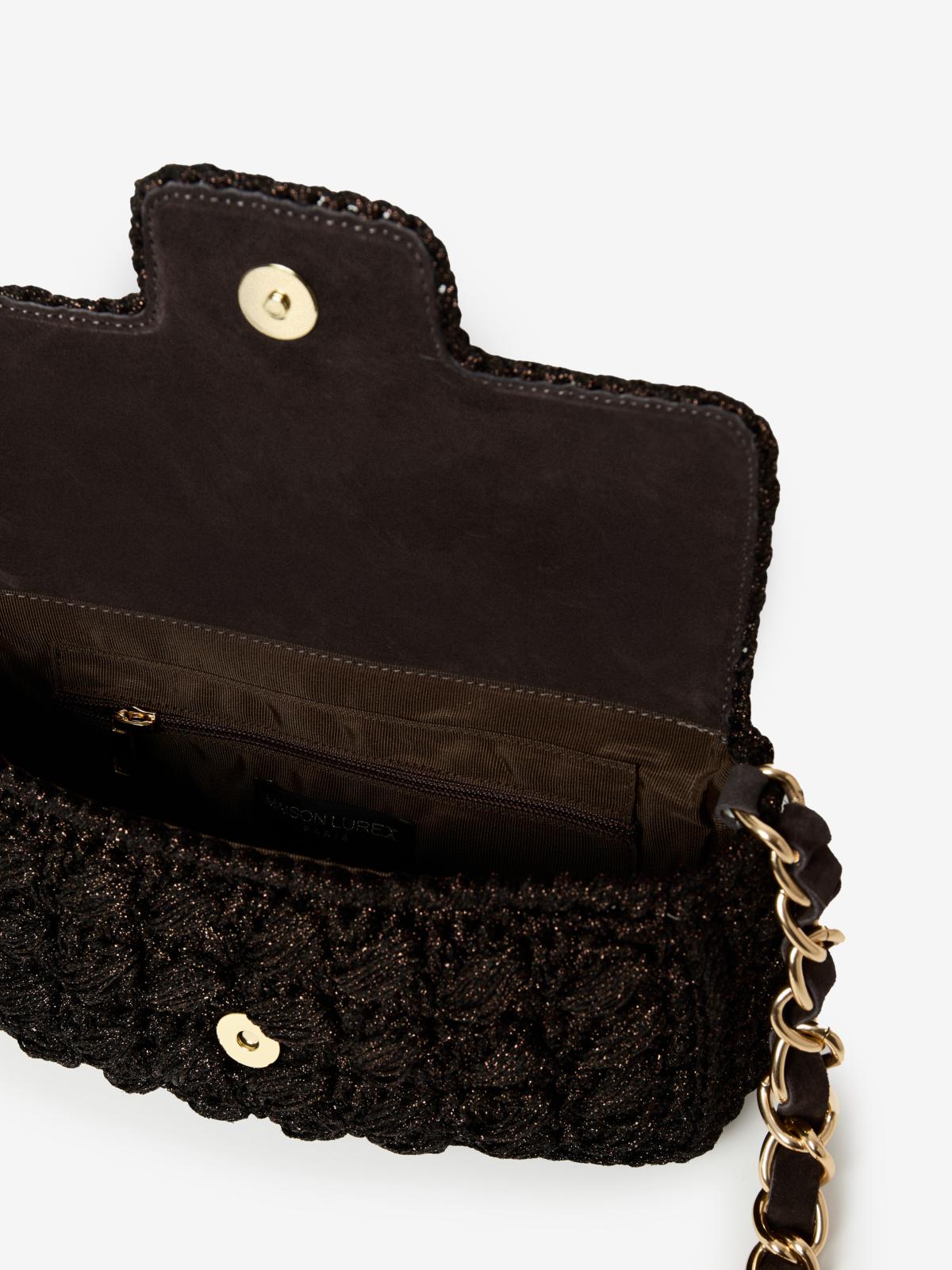 Sac à main à porter en bandoulière, crocheté à la main en Italie avec nos fils Lurex®. Il est la version mini de notre sac Pergola.