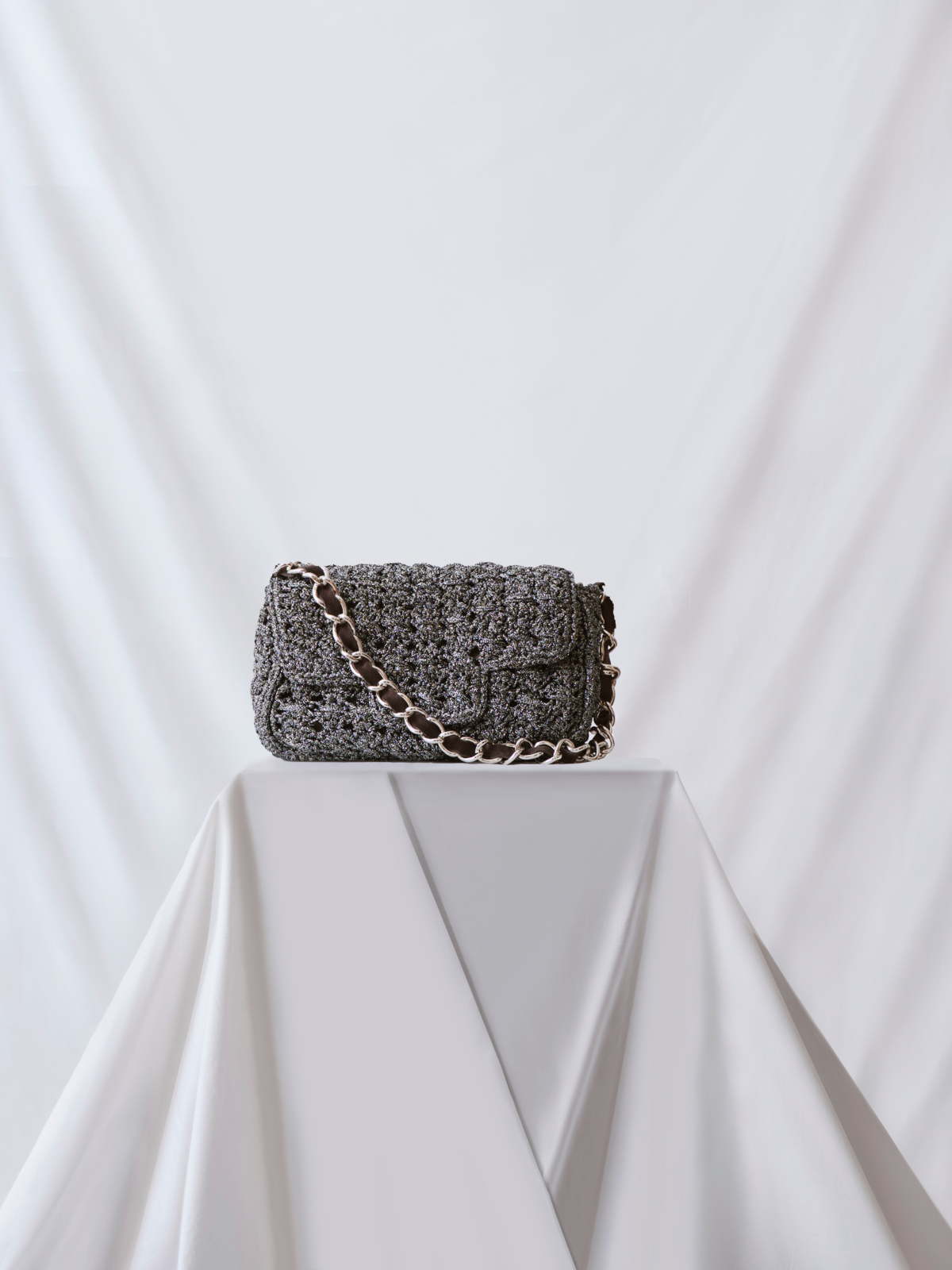 Sac à main à porter à l'épaule, crocheté à la main en Italie avec nos fils Lurex®.