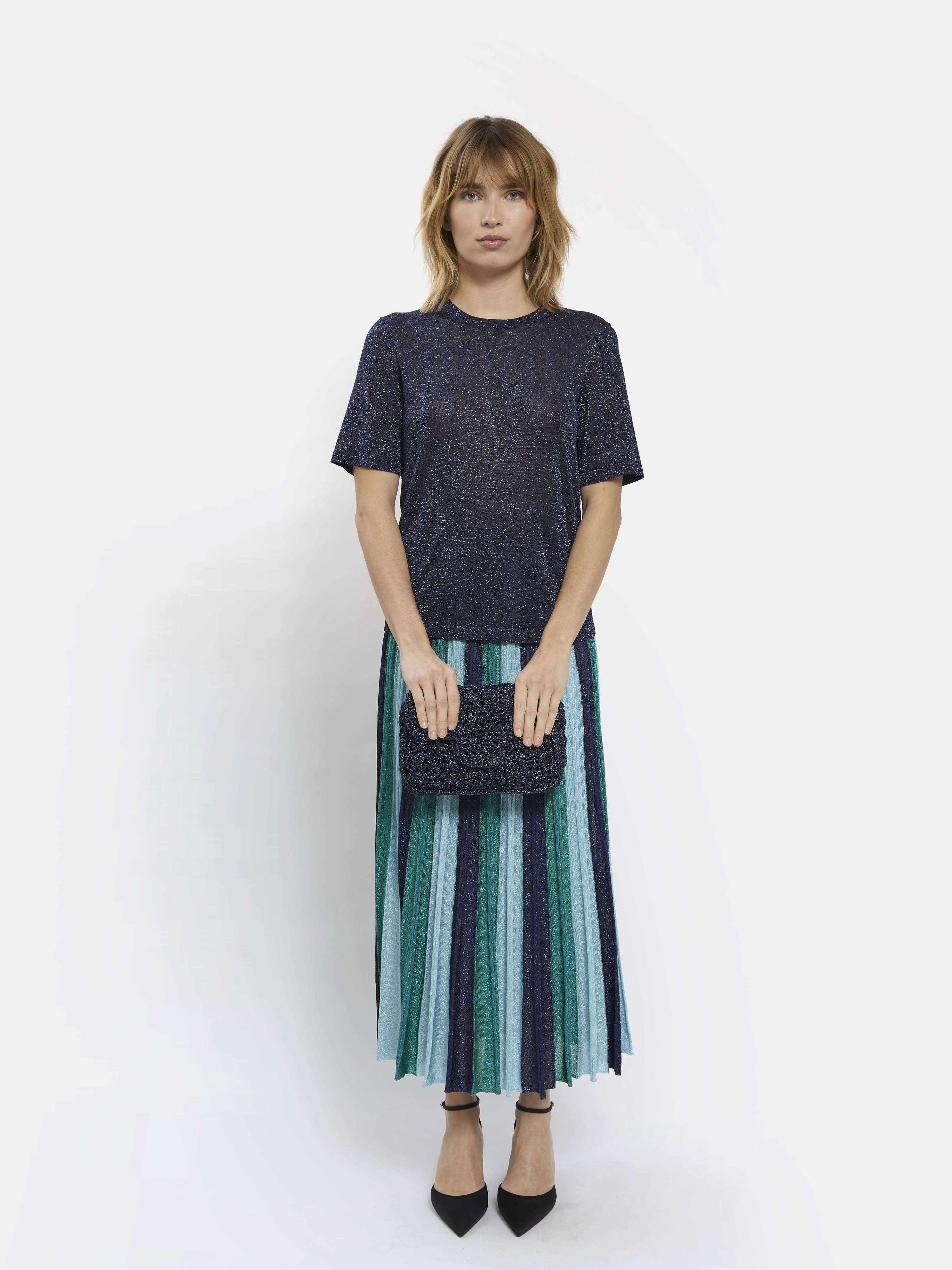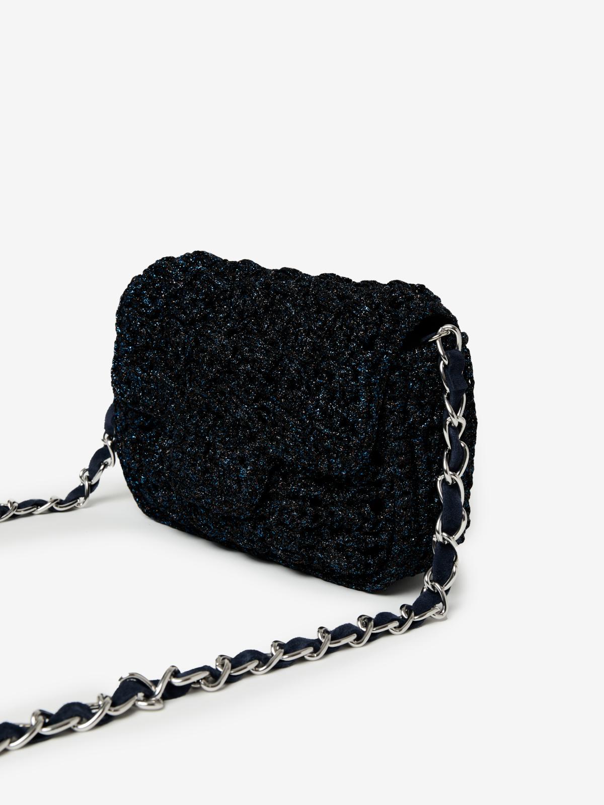 Sac à main à porter en bandoulière, crocheté à la main en Italie avec nos fils Lurex®. Il est la version carré de notre sac Fenice.