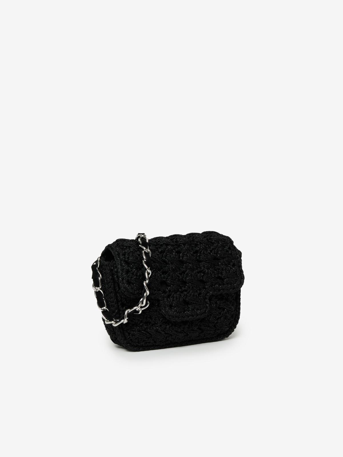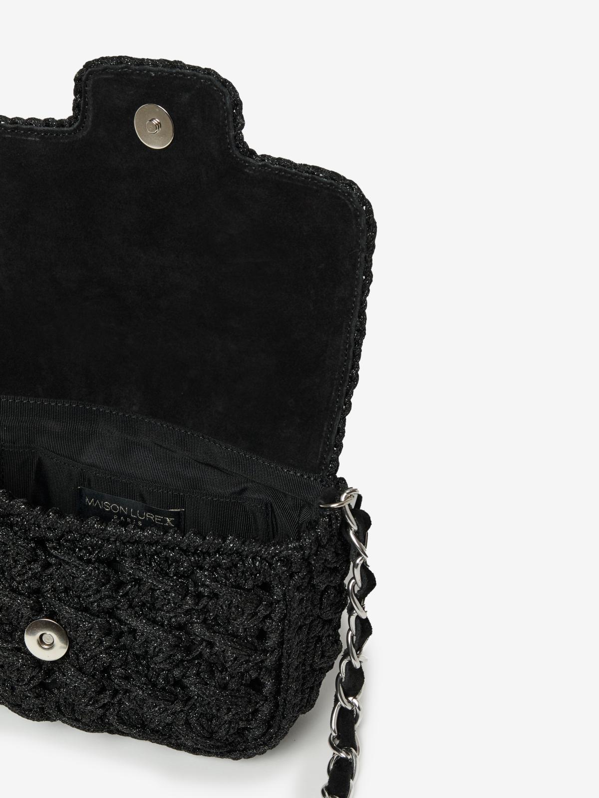 Sac à main à porter en bandoulière, crocheté à la main en Italie avec nos fils Lurex®. Il est la version carré de notre sac Fenice.