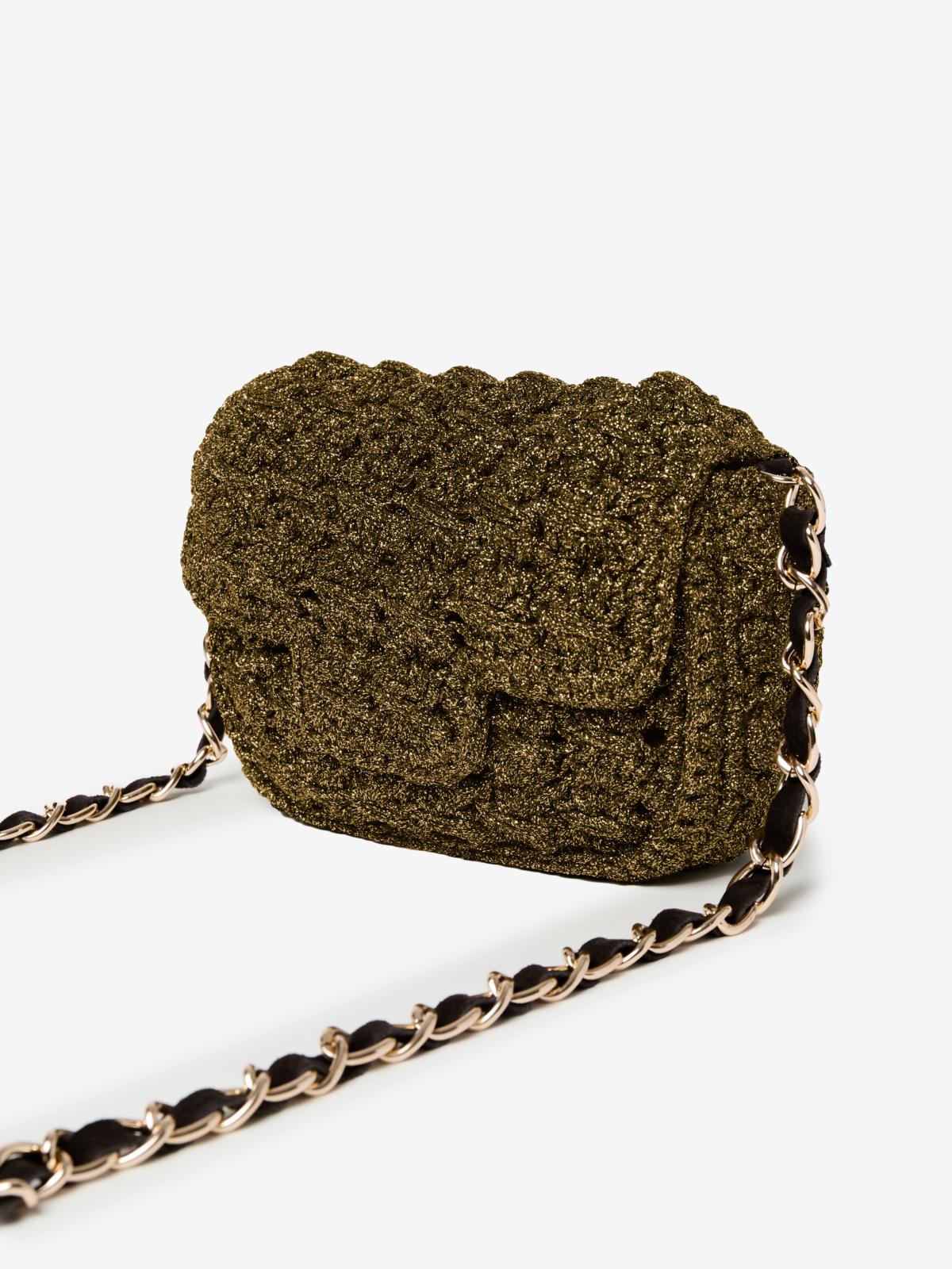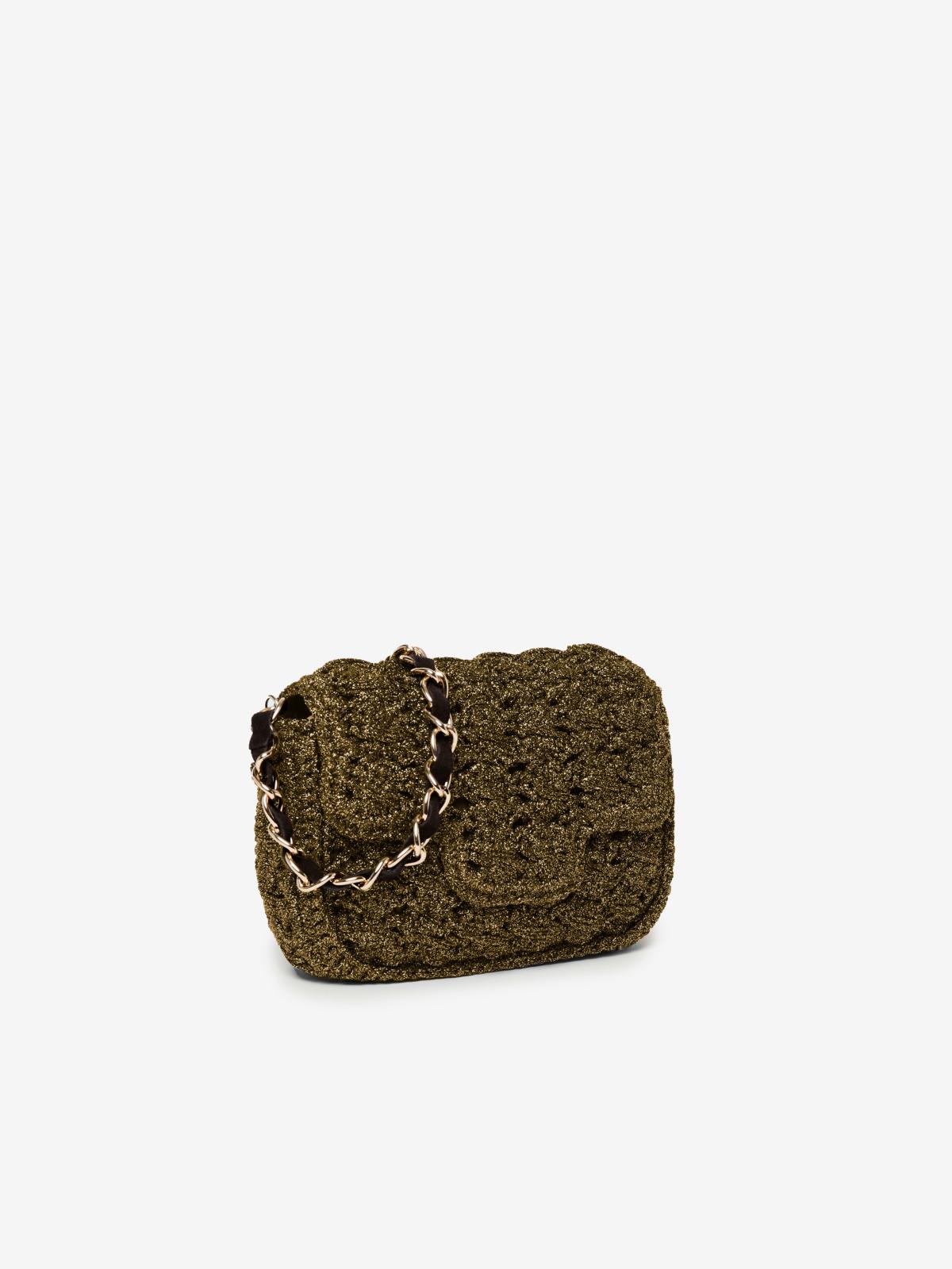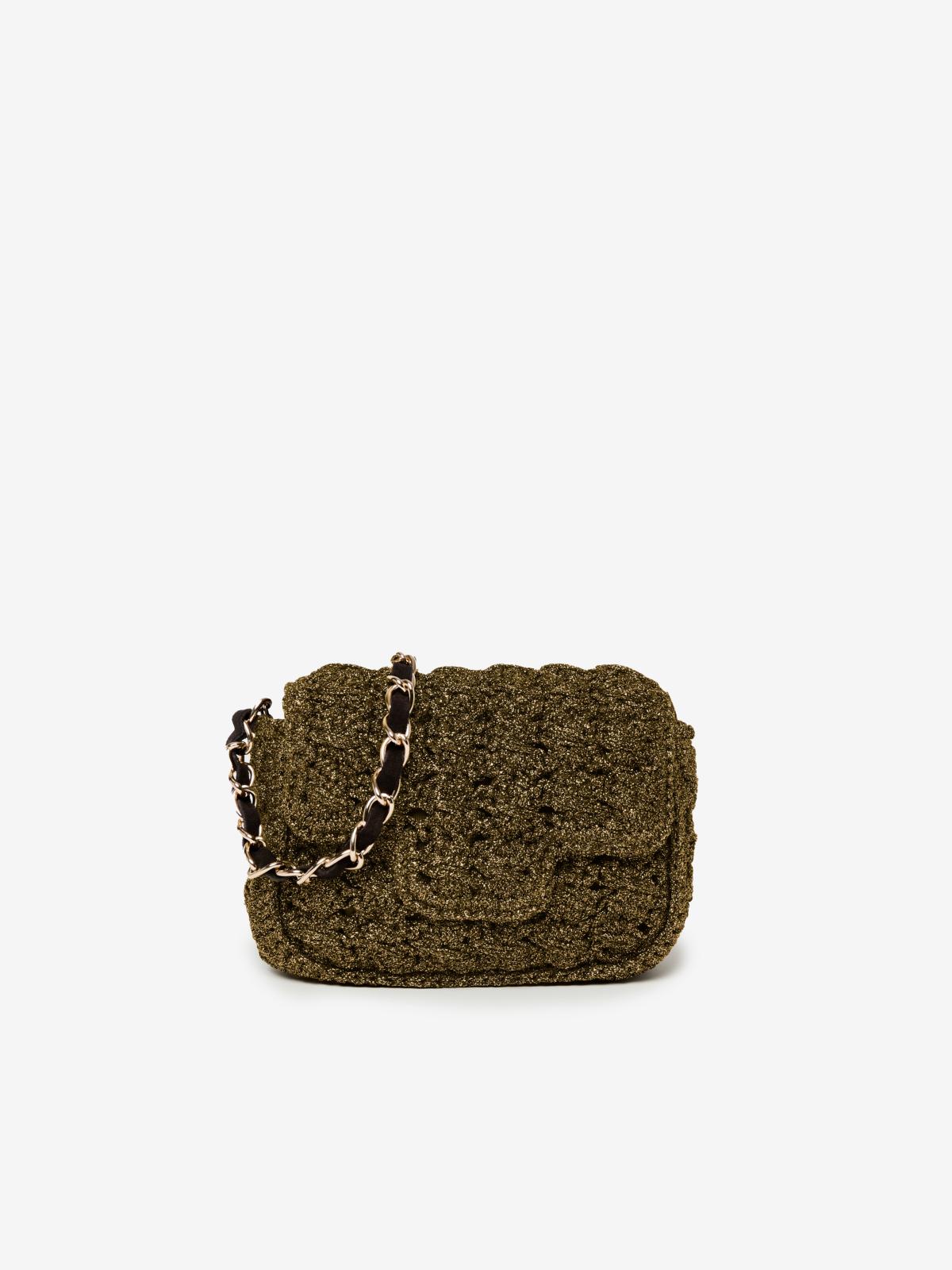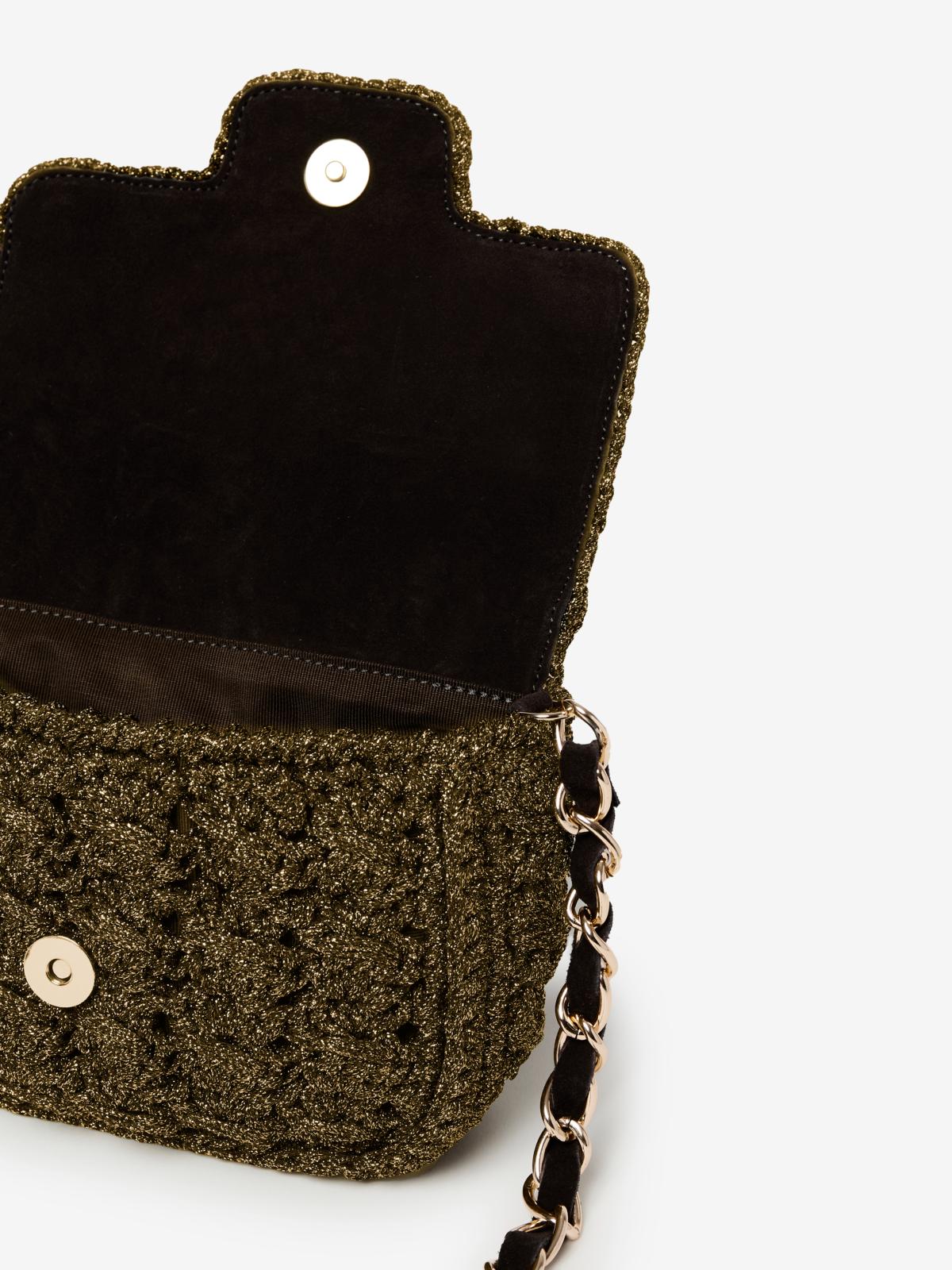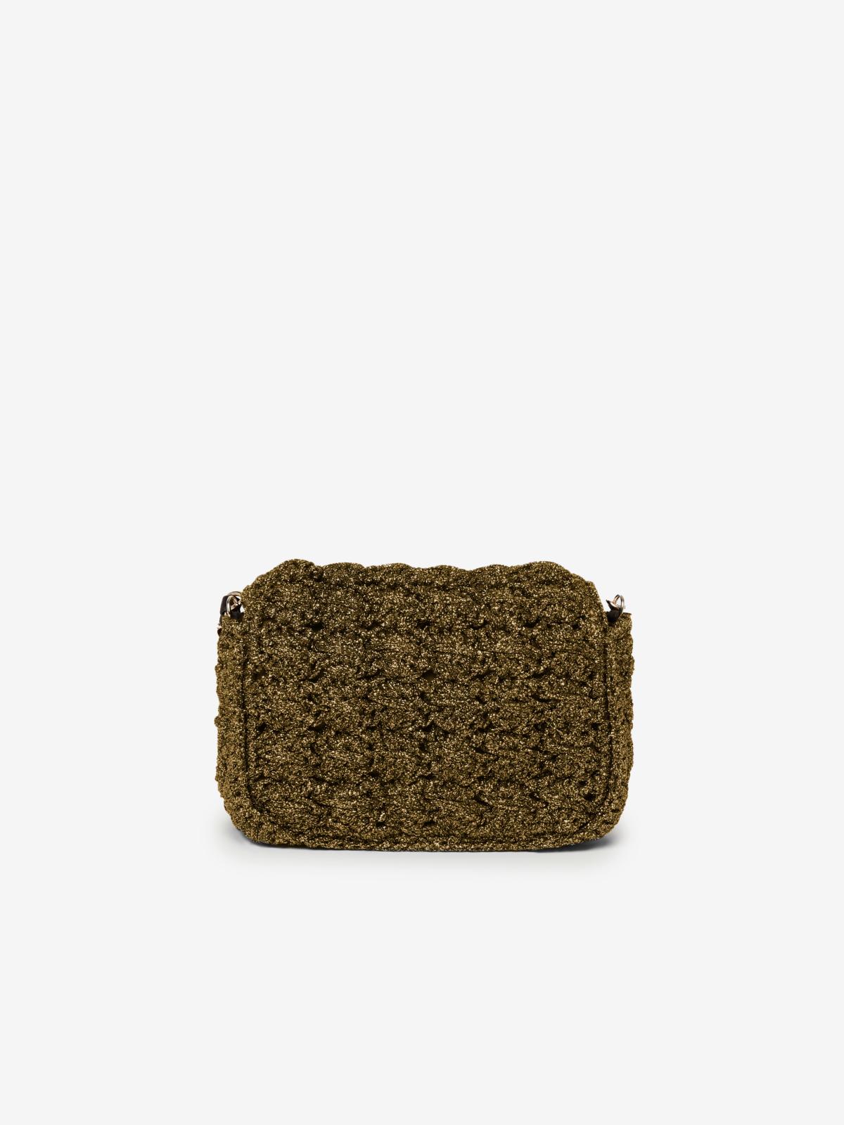 Sac à main à porter en bandoulière, crocheté à la main en Italie avec nos fils Lurex®. Il est la version carré de notre sac Fenice.