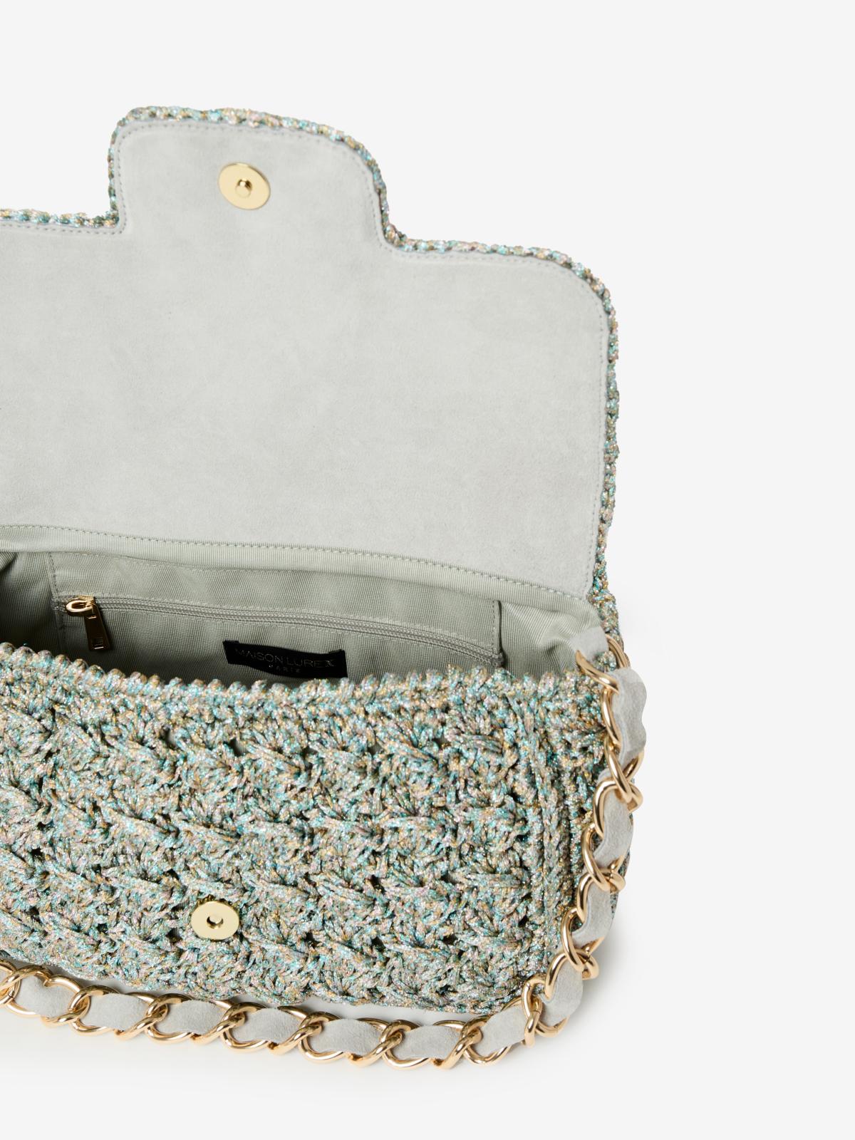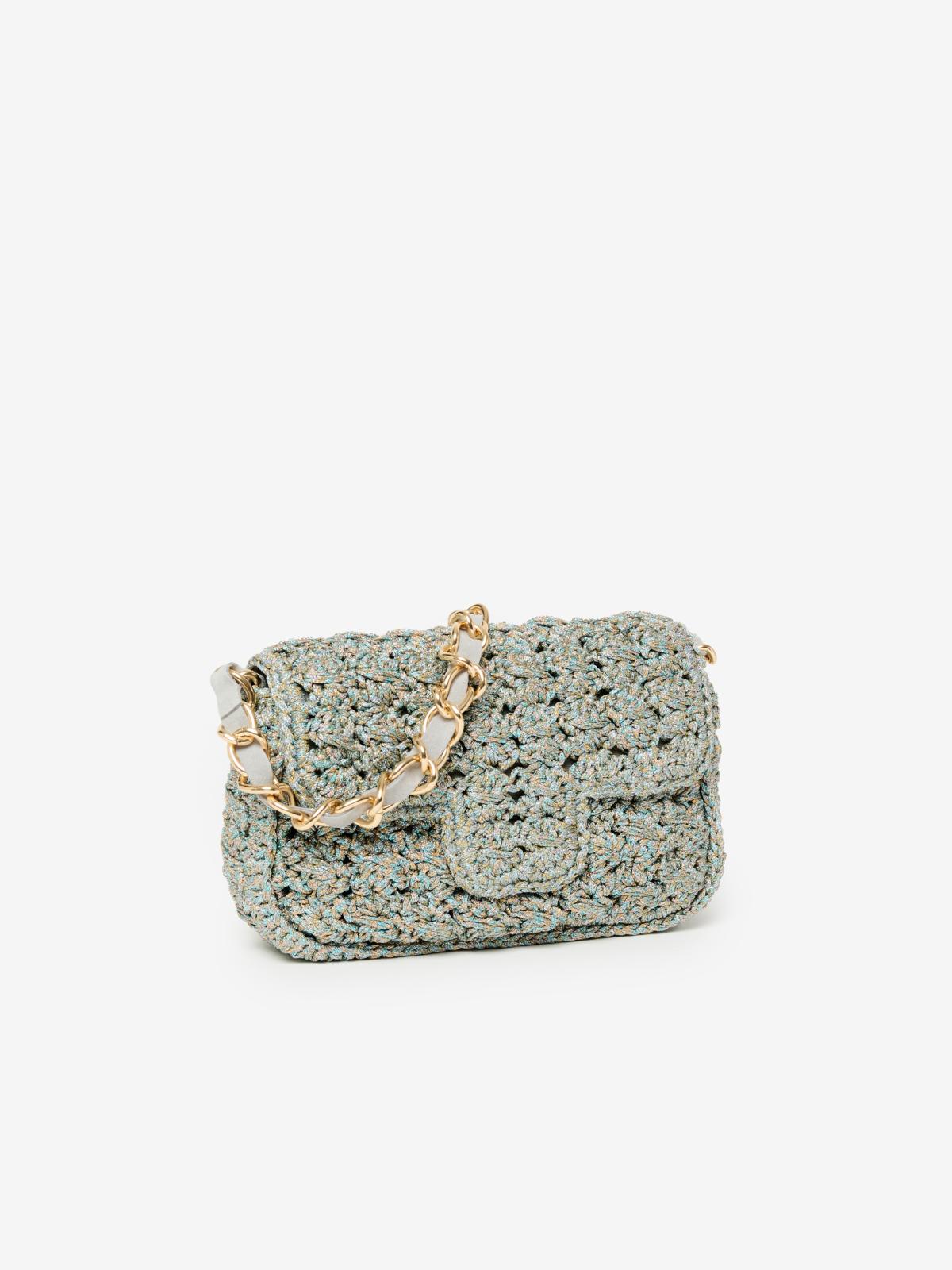 Sac à main à porter à l'épaule crocheté à la main en Italie avec nos fils Lurex®. Il est la version intermédiaire de notre sac Fenice.