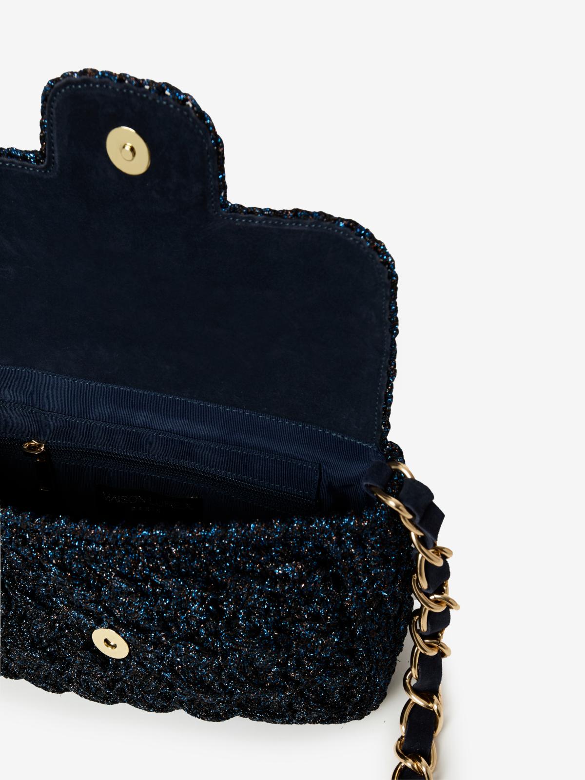 Sac à main à porter en bandoulière, crocheté à la main en Italie avec nos fils Lurex®. Il est la version intermédiaire de notre sac Fenice.
