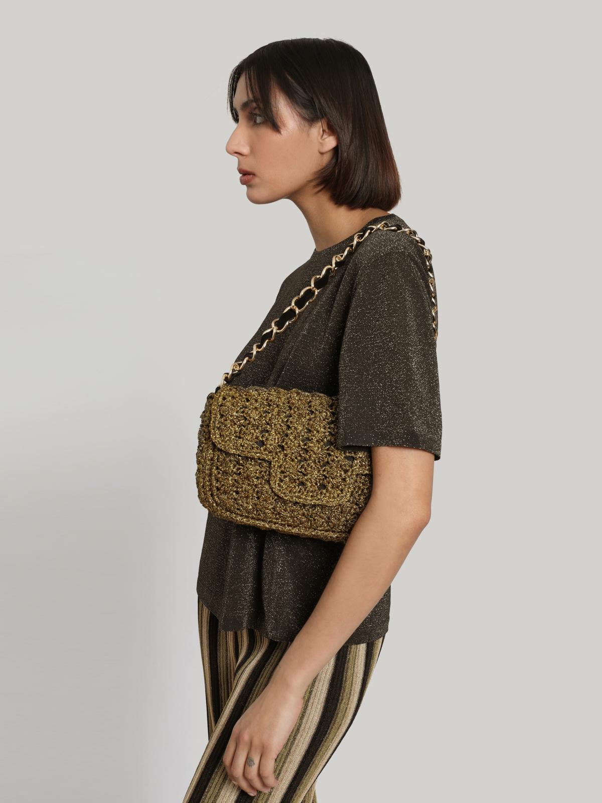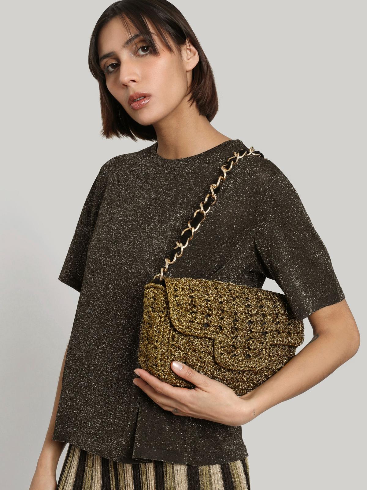 Sac à main à porter à l'épaule, crocheté à la main en Italie avec nos fils Lurex®.