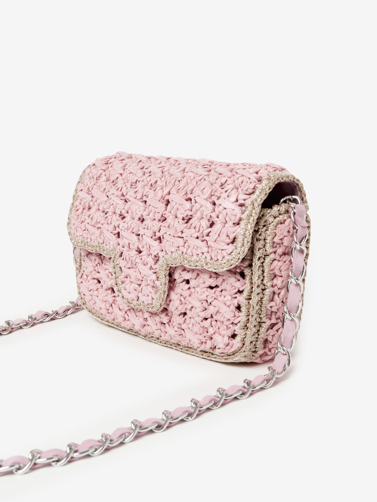 Sac crocheté à la main en Italie, il est tout en raphia avec des contours en fil Lurex®.